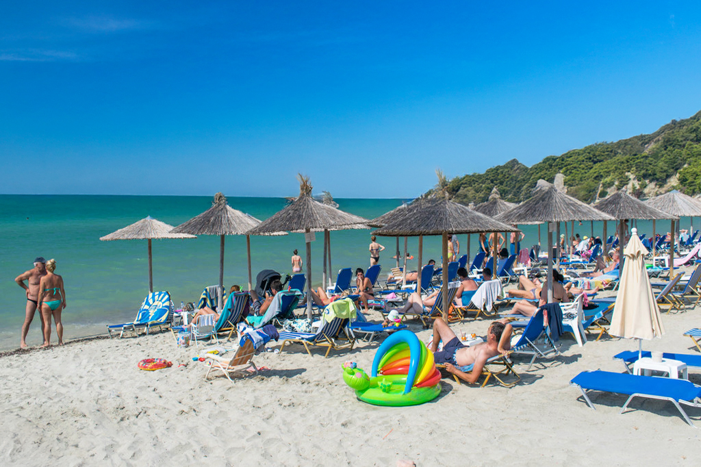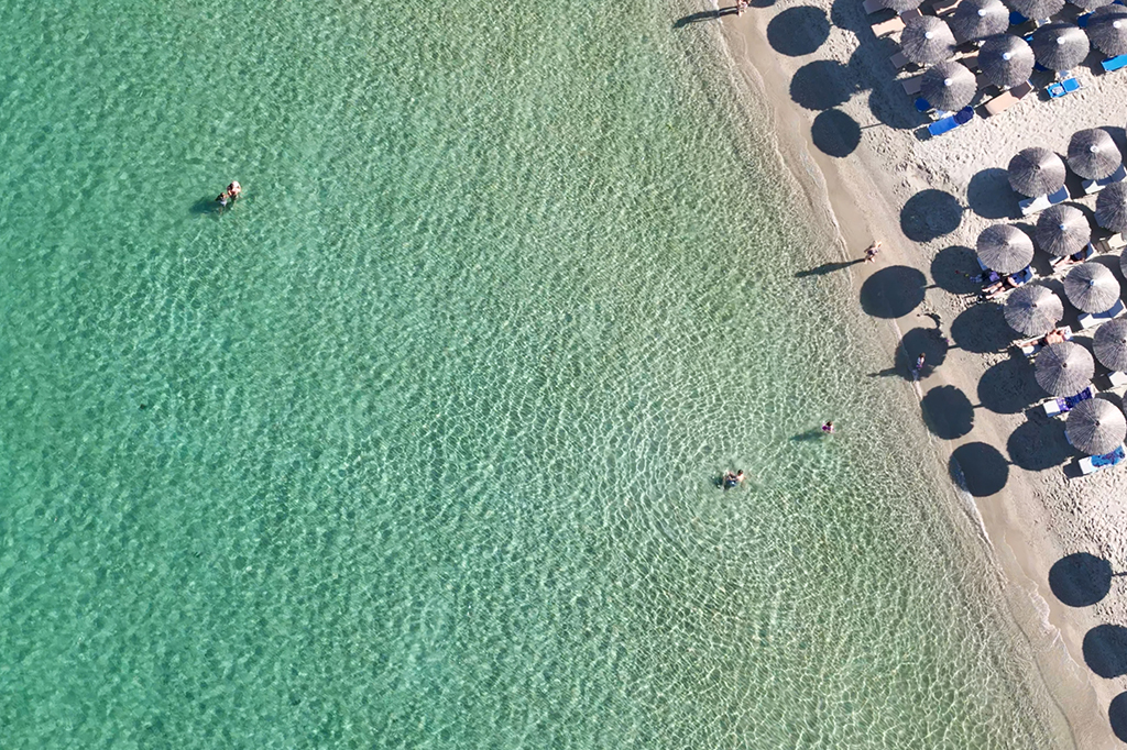 Siviri’s long, sandy beach is its main attraction. Sheltered with shallow, clear turquoise water, it’s perfect for families, swimmers, and anyone who enjoys calm seas. The beach is well-organized with sunbeds, beach bars, and shaded areas, yet still offers quiet corners ideal for reading or unwinding.